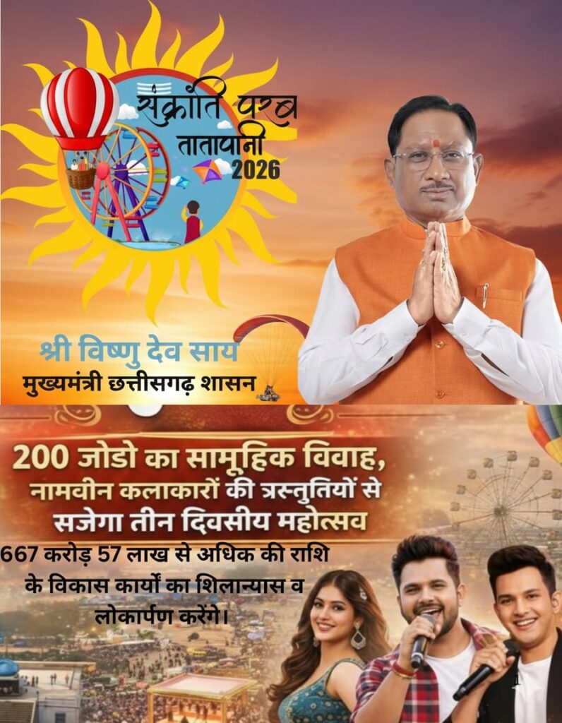 मुख्यमंत्री मकर संक्रांति के दिन करेंगे तातापानी महोत्सव का शुभारंभ 667 करोड़ से अधिक के 211 विकास कार्यों का होगा शिलान्यास व लोकार्पण..