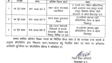 बिलासपुर। Cg govt school प्रदेश में शिक्षकों के युक्तियुक्तकरण की प्रक्रिया शुरू होते ही विवादों में आ गई है। ताजा मामला बिलासपुर का है। बिलासपुर जिला शिक्षा कार्यालय....