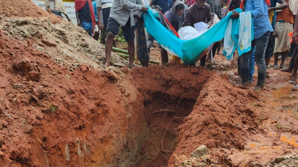 शुक्रवार का दिन गांव के लिए सबसे भारी साबित हुआ, मिट्टी और आग, दोनों ने मिलकर पांच जिंदगियों को विदाई दी.. कहीं से अर्थी उठ रही थी तो कहीं से दफन की तैयारी.. दो गर्भवती माताओं का अधूरा मातृत्व, उनकी गोद के मासूम बच्चों की नन्हीं-नन्हीं लाशें और साथ ही सास का जाना– यह सब देखकर गांव का हर दिल फट पड़ा..